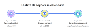 Scadenze: Le domande di iscrizione all’anno scolastico 2026/2027 possono essere presentate dalle dalle ore 8:00 del 13 gennaio 2026 alle ore alle ore 20:00 del 21 febbraio 2026